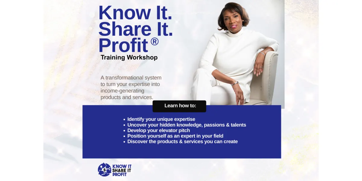 Through her Know It. Share It. Profit.™ system, she has guided clients in transforming their expertise into consulting services, courses, speaking engagements, and more.